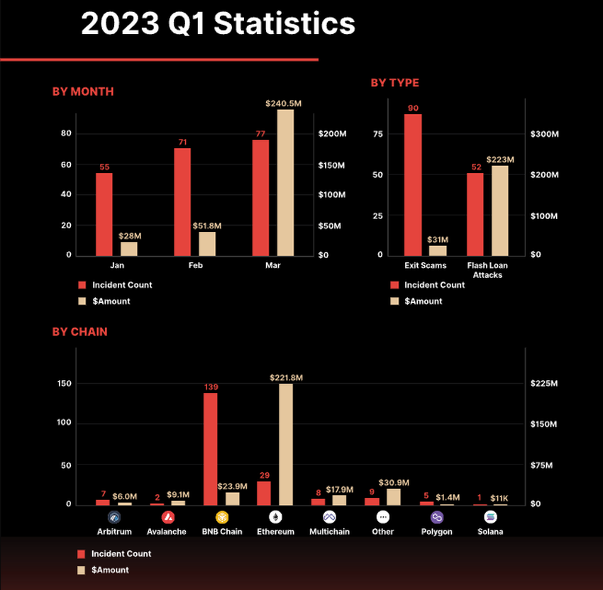 Tahun 2023 menjadi tahun yang super sibuk dalam hal insiden peretasan kripto. Pada kuartal pertama tahun ini saja, komplotan peretas sudah berhasil menggondol total lebih dari US$320 juta, menurut firma keamanan blockchain CertiK. Parahnya lagi, platform Ethereum menjadi sasaran utama serangan tersebut, dengan total kerugian sekitar US$221 juta.