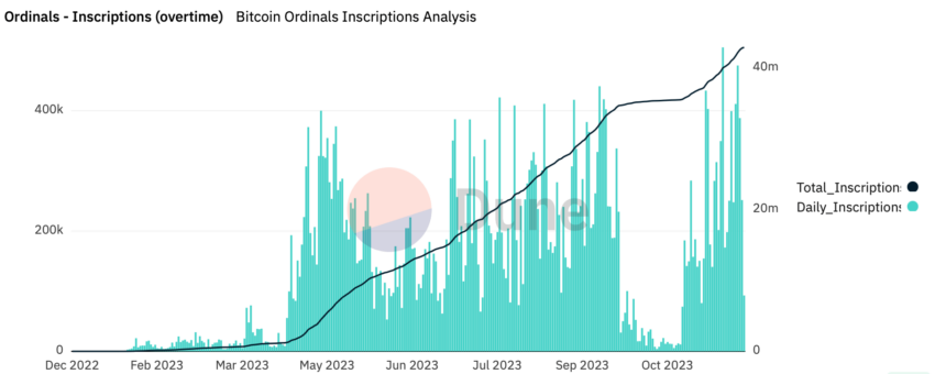 Saat ini, jumlah NFT yang berbasis protokol Ordinals mencapai 42,9 juta unit. Sehari sebelumnya, jumlah “token” yang dibuat meningkat secara dramatis, sehingga menyebabkan biaya transaksi juga meningkat.