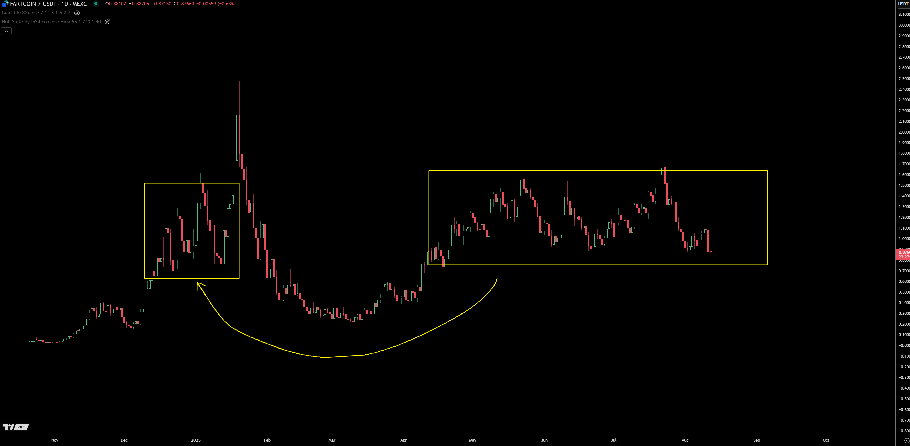TraderSZ membandingkan struktur harga saat ini dengan tahun 2024 dan percaya bahwa sejak Mei, FARTCOIN berada dalam zona tertentu dan siap untuk breakout yang lebih besar daripada tahun 2024.