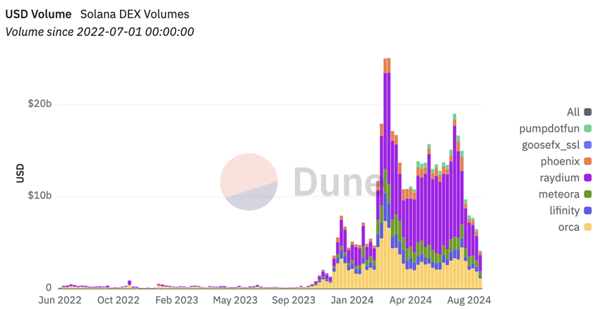 SponsoredSementara Solana masih terikat dengan proses likuidasi FTX, blockchain ini telah mengalami penurunan aktivitas on-chain. Minggu lalu, ekosistem mencatat volume mingguan terendah dalam enam bulan di bursa terdesentralisasi (DEX) sebesar US$7,7 miliar, menurut Dune.