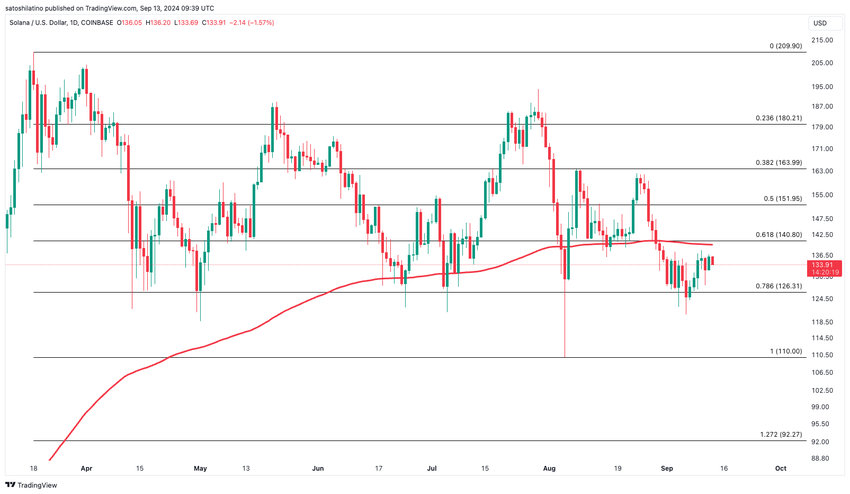Dari perspektif teknis, harga Solana menghadapi momen kritis. Setelah kehilangan dukungan rata-rata bergerak eksponensial (EMA) 200 hari, harga berada di sekitar US$127.