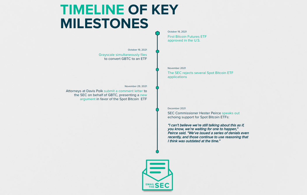 Terkait hal ini, Grayscale mendedikasikan sebuah halaman khusus di situsnya dalam rangka menampung suara para investor untuk mengadvokasi mengubah GBTC ke ETF Bitcoin spot.
