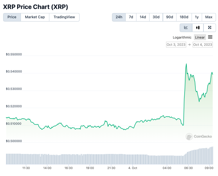 Terkait kabar ini, harga XRP, aset kripto yang terseret dalam kasus SEC vs Ripple, naik sekitar 4,9% dalam 24 jam terakhir. Sementara itu, jika kita ukur dalam time frame 7 hari terakhir, harga XRP sudah menguat sekitar 7,7%.