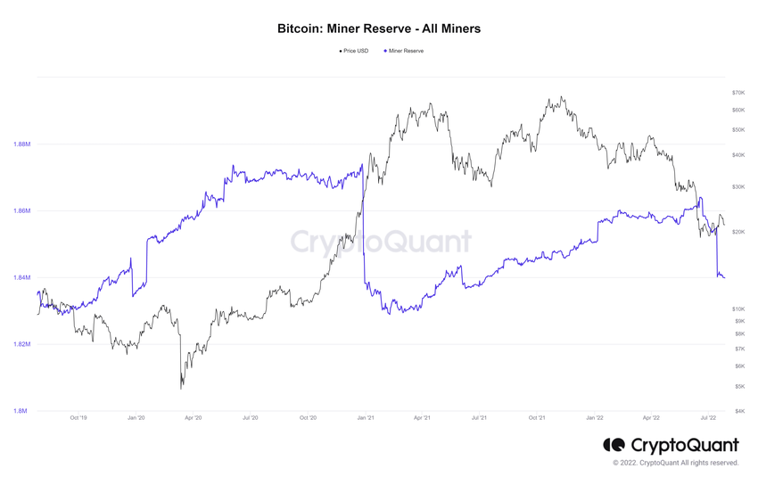 Meskipun Bitcoin telah pulih dan berhasil mencapai kisaran lebih dari US$22.000 pekan ini, para penambang masih belum terlalu optimis terkait pertumbuhan masa depan kripto. Sehingga, mereka masih tetap memilih untuk melakukan arus keluar secara massal. Alhasil, hal ini menyebabkan total cadangan (reserve) BTC para penambang turun drastis.