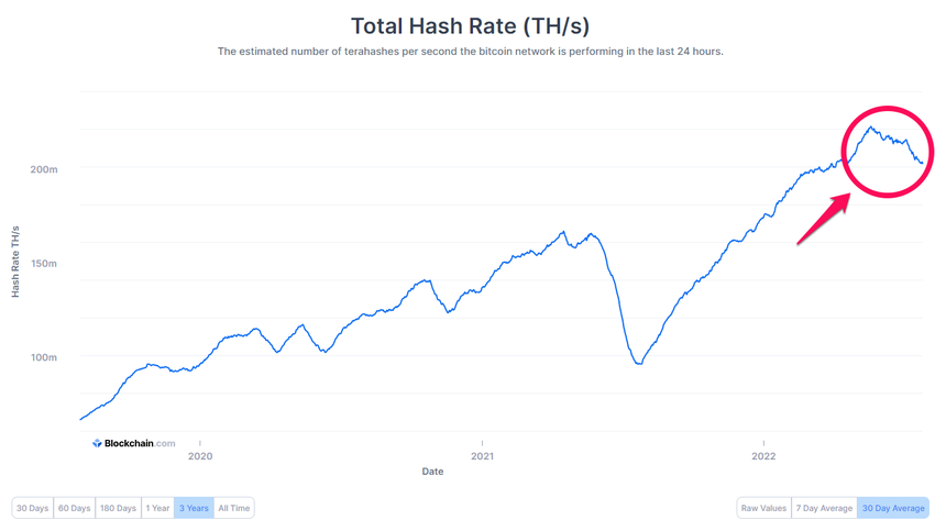 Hingga saat ini, hashrate Bitcoin telah turun sebanyak 15% sejak berada di titik puncaknya.