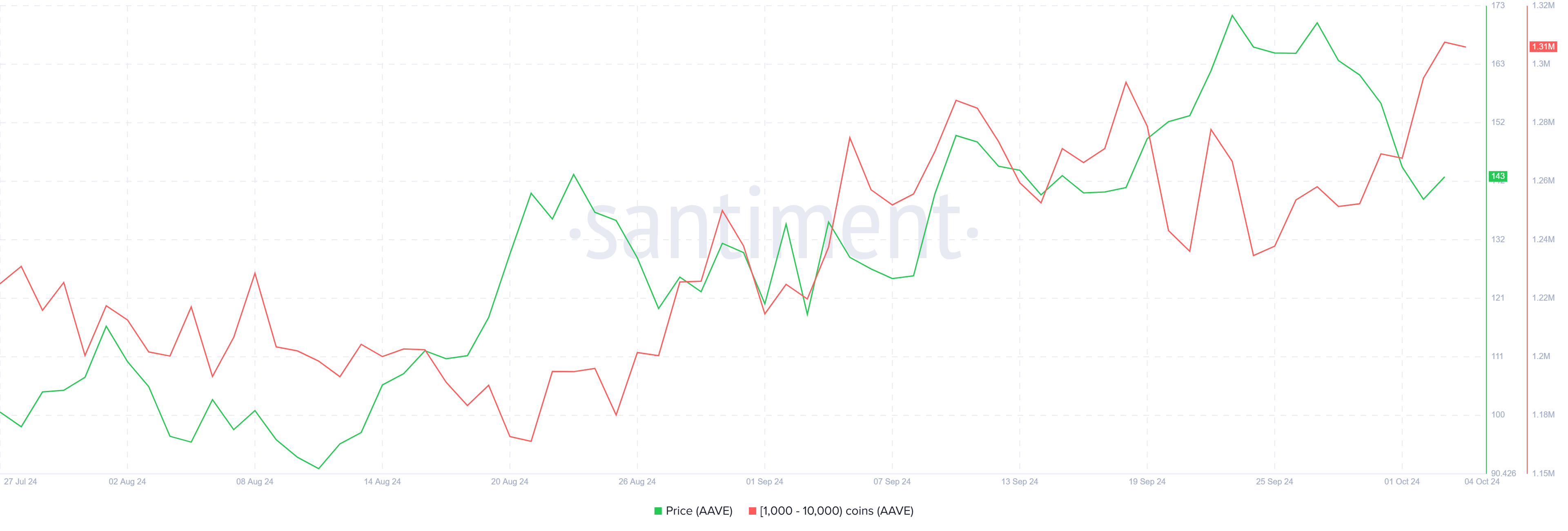 Aktivitas investor seputar AAVE menunjukkan kepercayaan yang meningkat pada potensi pemulihan altcoin tersebut. Selama tiga hari terakhir, alamat yang memegang antara 1.000 dan 10.000 AAVE telah mengumpulkan lebih dari 40.000 AAVE, bernilai US$6 juta. Aktivitas pembelian signifikan dari pemegang besar ini menunjukkan bahwa mereka memanfaatkan harga rendah saat ini, memposisikan diri untuk kenaikan harga potensial.