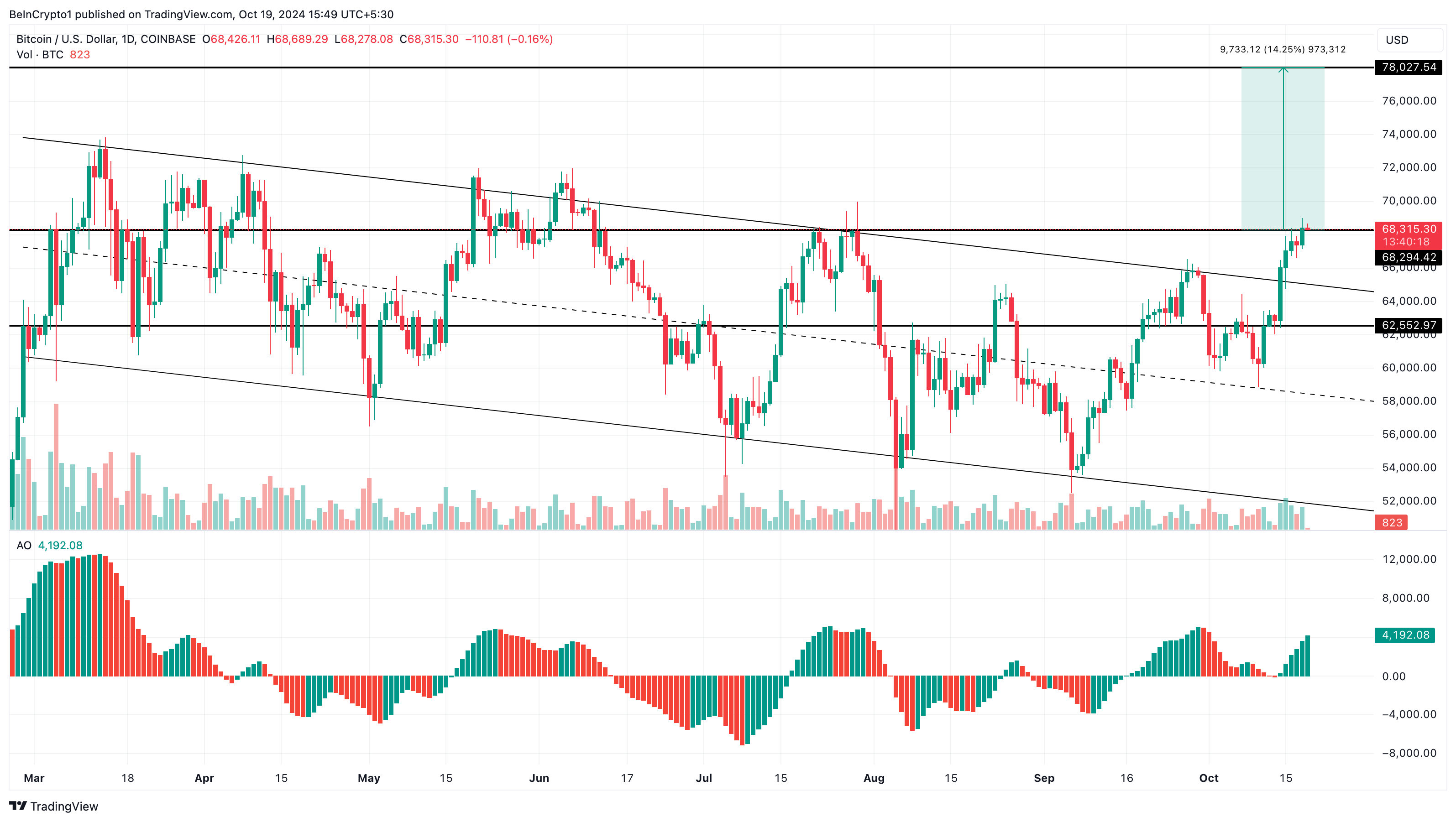 Saat ini, AO yang meningkat menunjukkan bahwa momentum bullish Bitcoin tetap tangguh.