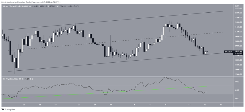 Pertama, BTC telah diperdagangkan di dalam ascending parallel channel sejak 18 Juni lalu. Channel seperti itu biasanya berisi struktur korektif. Sehingga, kondisi keruntuhan pada harga akhirnya akan diantisipasi.