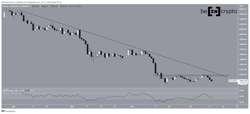 SponsoredLalu, harganya mulai mengalami sedikit peningkatan sejak saat itu dan membentuk dua level terendah yang lebih tinggi. Namun, ternyata BTC gagal mencapai garis descending resistance. Alih-alih Bitcoin mendapat aksi penolakan dari area resisten horizontal di level US$21.700.