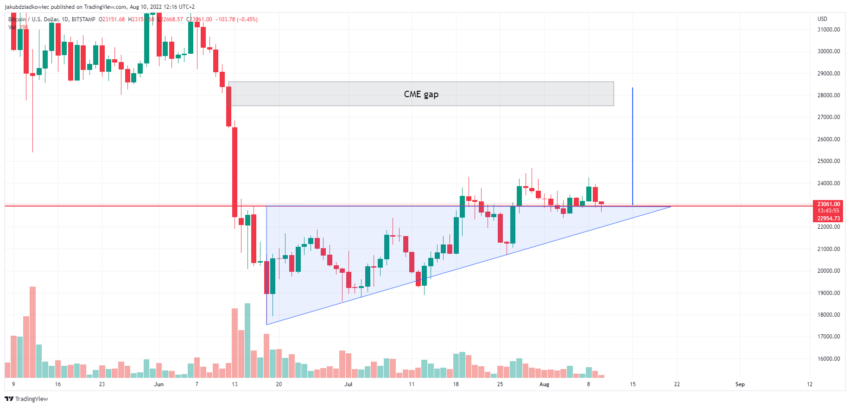 Jika momentum bullish berlanjut, maka BTC bisa segera mencapai target harga di kisaran US$27.500 hingga US$28.600. Sebagai informasi, area ini sendiri merupakan kisaran yang disebut sebagai CME gap, yang dihasilkan oleh aksi penurunan cepat antara tanggal 11-12 Juni.