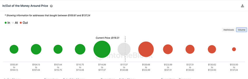 Menurut data In Out of Money Around Price dari IntoTheBlock, tren kenaikan harga BCH saat ini kemungkinan akan mencapai US$135. Namun, BCH harus terlebih dahulu menembus resistance dari 250.000 alamat yang membeli 1,33 juta koin dengan harga rata-rata US$122.