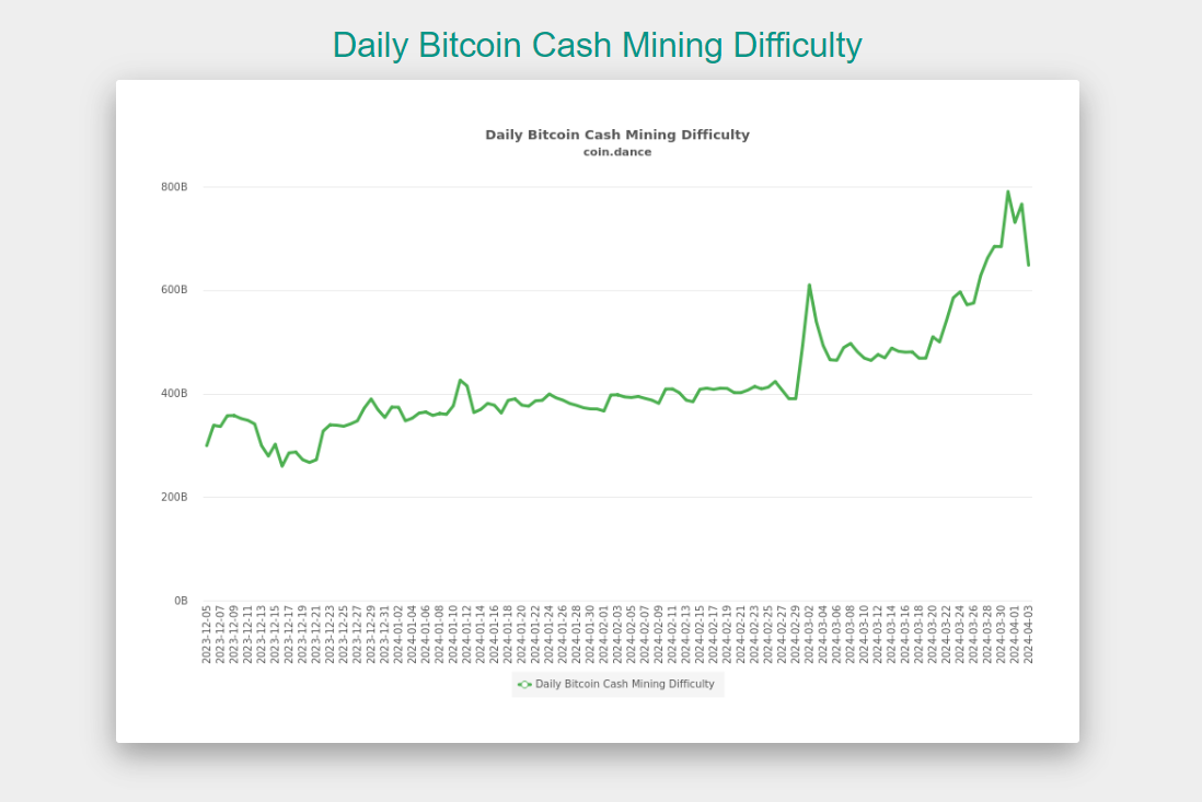 Di sisi lain, David Shares, tokoh terkenal di komunitas Bitcoin Cash, menyebut penurunan harga ini akibat dari penurunan hash rate mining. Para miner telah mengalihkan perhatian mereka ke Bitcoin (BTC) dalam rangka antisipasi Bitcoin halving. Sebagai akibatnya, pergeseran ini telah memperlambat waktu produksi blok di jaringan BCH sampai algoritma kesulitan bisa menyesuaikan.