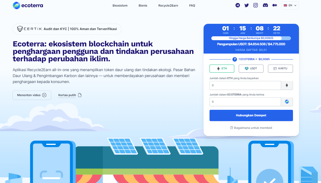 Ini berarti bahwa investor memiliki waktu yang terbatas untuk membeli token $ECOTERRA dengan harga murah, dengan 1 token yang saat ini ditawarkan dengan harga US$0,0085.