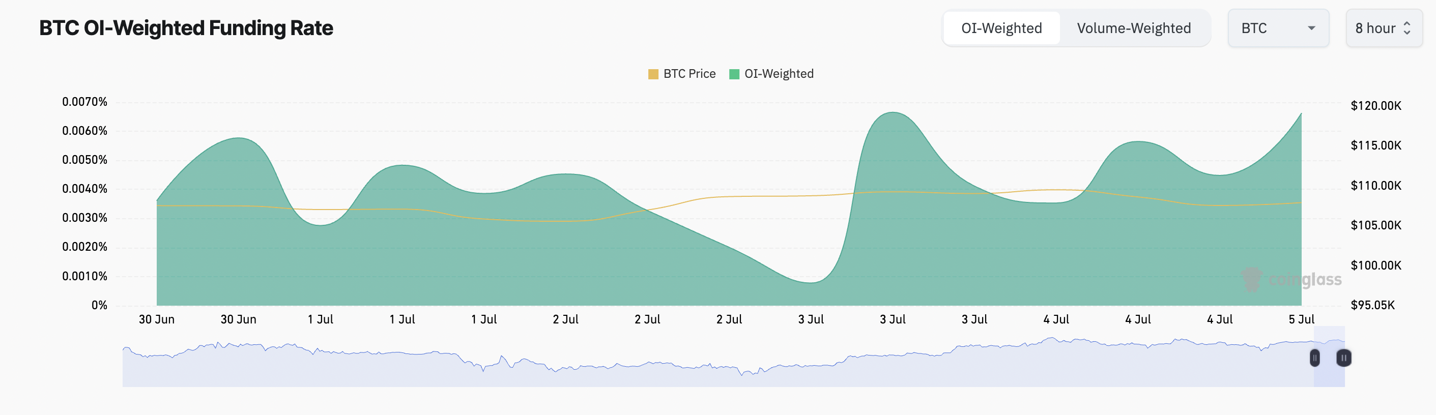 Dalam kasus BTC, funding rate positif yang stabil—bahkan setelah pergerakan besar koin yang sudah lama tidak aktif—menunjukkan bahwa trader tetap yakin dengan kekuatan jangka panjang aset ini.