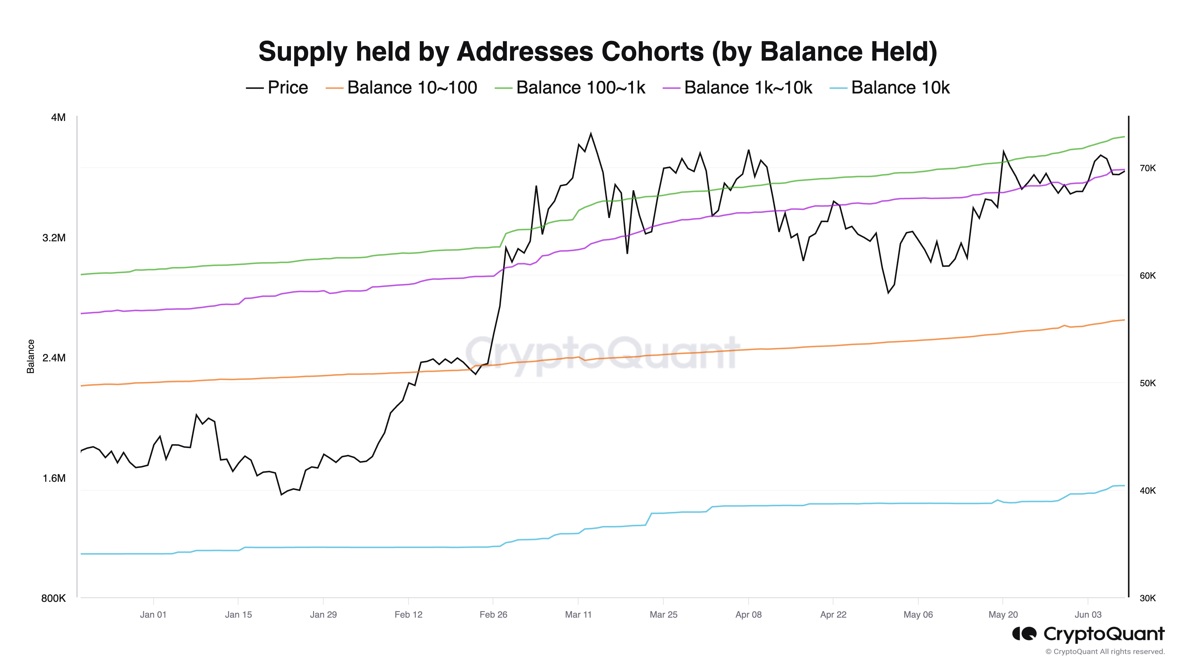 Spesifiknya, alamat yang memegang 100 – 1.000 BTC mengalami peningkatan sebesar 30.601 BTC. Sementara alamat pemegang 1.000 – 10.000 BTC juga naik sebesar 34.834 BTC. Terakhir, golongan holder terbesar alias mereka yang menampung lebih dari 10.000 BTC, juga menggenjot saldo mereka sebesar 24.176 BTC.