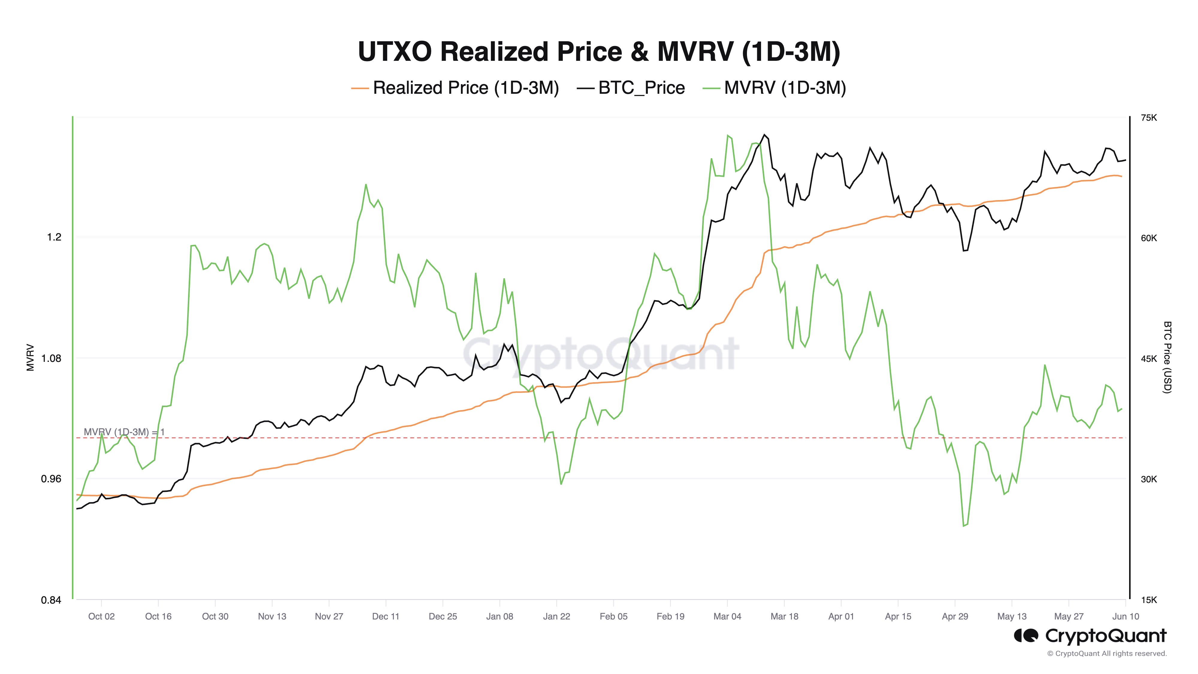 Harga akuisisi rata-rata untuk Bitcoin yang dibeli antara satu hari sampai tiga bulan lalu adalah US$67.500. Bitcoin yang dibeli dalam jangka waktu ini menyumbang 17% dari total pasokan yang beredar.