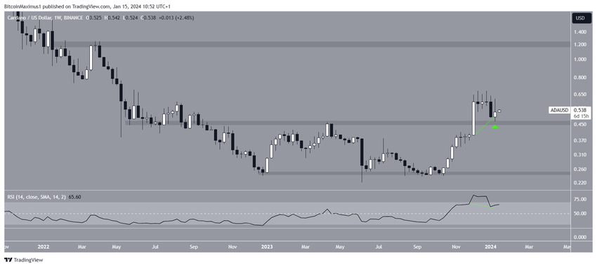 Pada Oktober 2023, ADA telah memulai aksi kenaikan yang cepat. Aksi naik ini selanjutnya berhasil menembus kisaran tersebut pada bulan berikutnya dan sekaligus mencetak puncak tahunan baru di angka US$0,68 pada Desember.