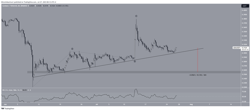Harga Cardano (ADA) saat ini diperdagangkan sedikit di atas level support diagonal dan horizontal setelah gagal mempertahankan aksi kenaikan akibat breakout sebelumnya.