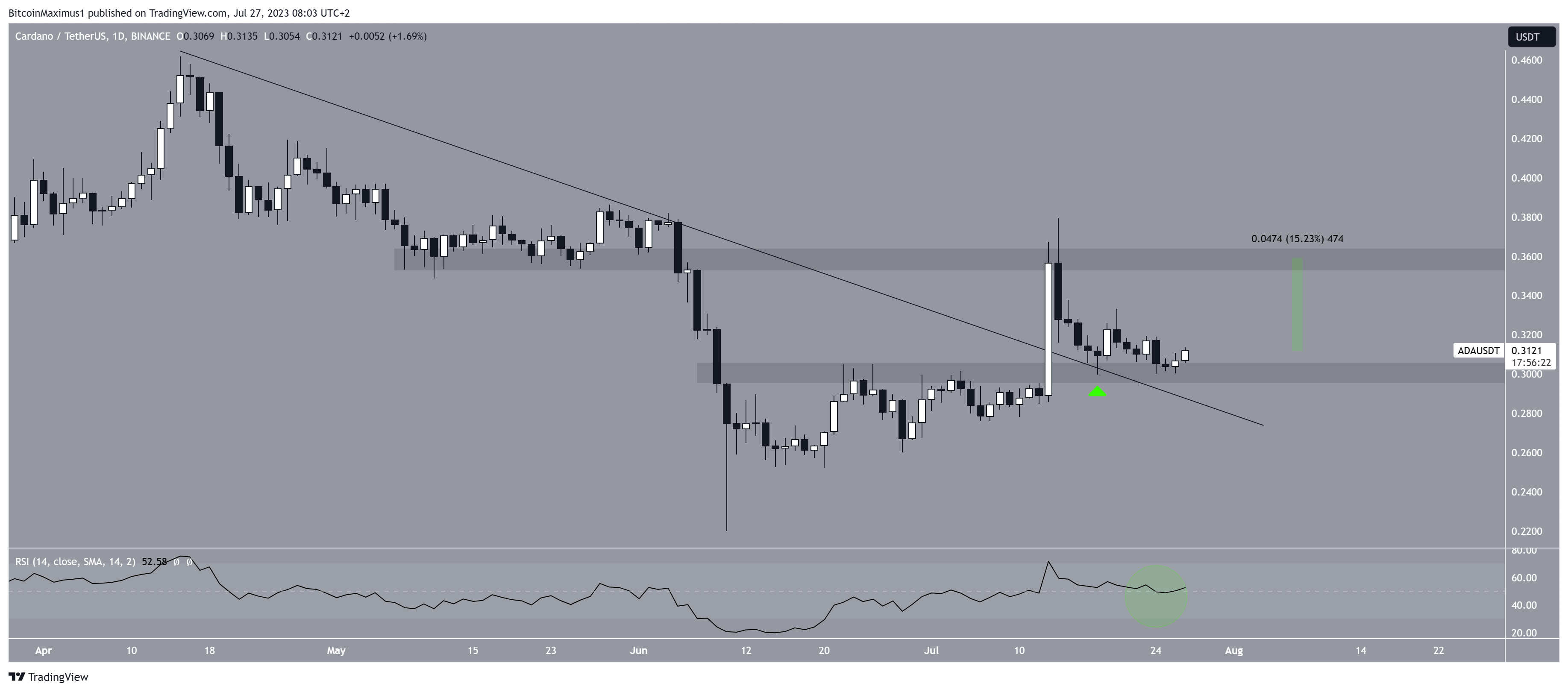 Analisis teknikal pada time frame harian menunjukkan bahwa prospek harga Cardano (ADA) saat ini bernada positif karena beberapa alasan.