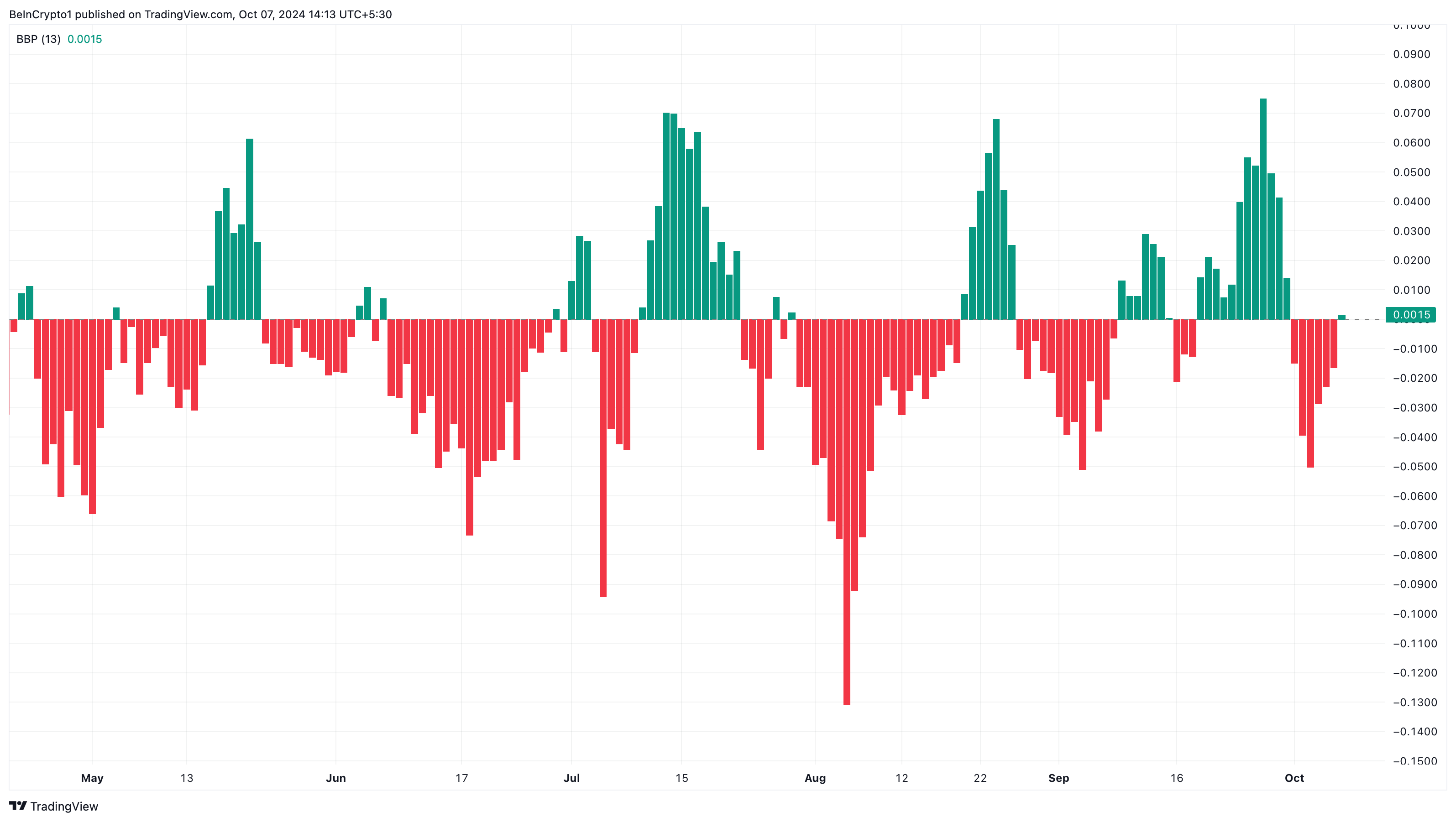 SponsoredIndikator lain yang menunjukkan penurunan harga Cardano adalah Bull Bear Power (BBP). BBP membandingkan kekuatan pembeli (bulls) dengan penjual (bears). Ketika pembacaan indikator berwarna hijau, pembeli mengendalikan pasar, tetapi jika berwarna merah, penjual yang dominan.