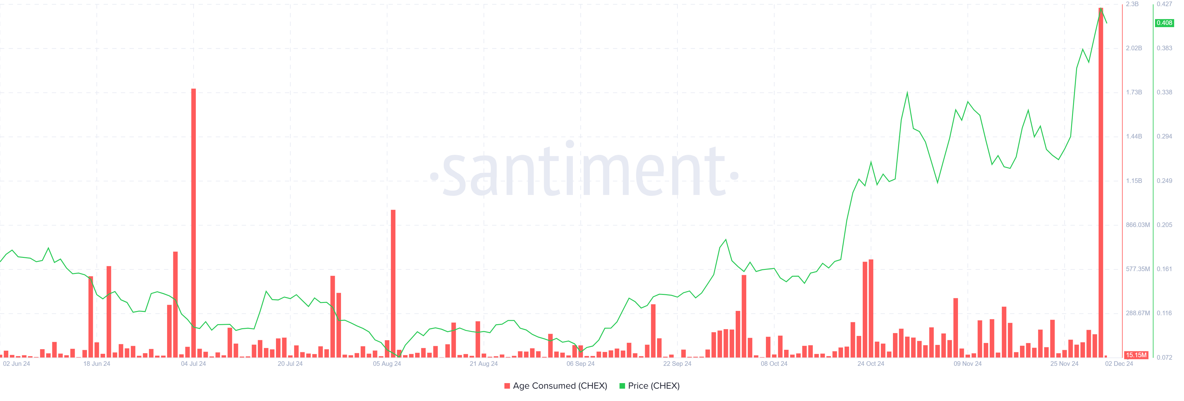 Saat CHEX mencapai ATH barunya, pengambilan keuntungan melonjak ke level tertinggi dalam sejarahnya. Banyak investor memanfaatkan kesempatan ini untuk menjual kepemilikan mereka, mengamankan keuntungan dari reli terbaru. Meskipun lonjakan penjualan ini menimbulkan kekhawatiran tentang potensi penurunan harga jangka pendek, situasi bisa stabil jika pengambilan keuntungan melambat.