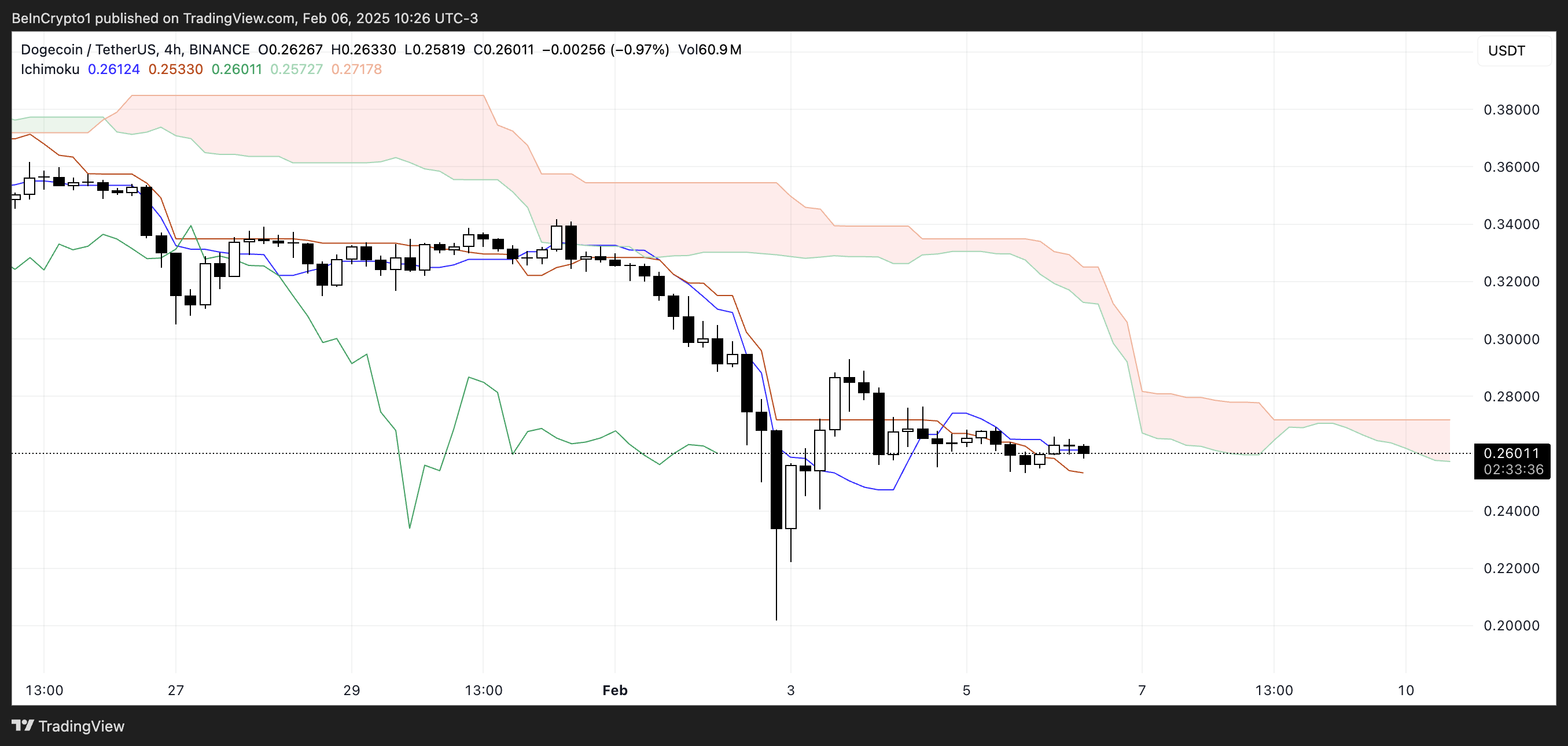 SponsoredIchimoku Cloud Menunjukkan Prospek Bearish untuk DOGE