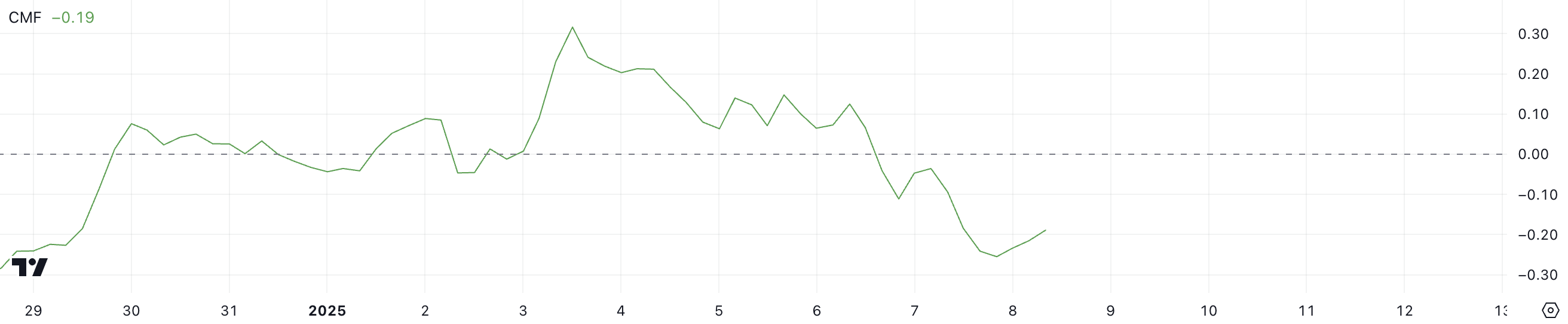 SponsoredNilai CMF positif menunjukkan tekanan beli bersih, menandakan potensi momentum bullish, sementara nilai negatif mencerminkan tekanan jual bersih, menunjukkan sentimen bearish. Penurunan baru-baru ini dari puncak 0,32 pada 3 Januari ke nilai negatif saat ini menyoroti perubahan signifikan dalam sentimen pasar, bertepatan dengan penurunan harga ENA dari di atas US$1,2.