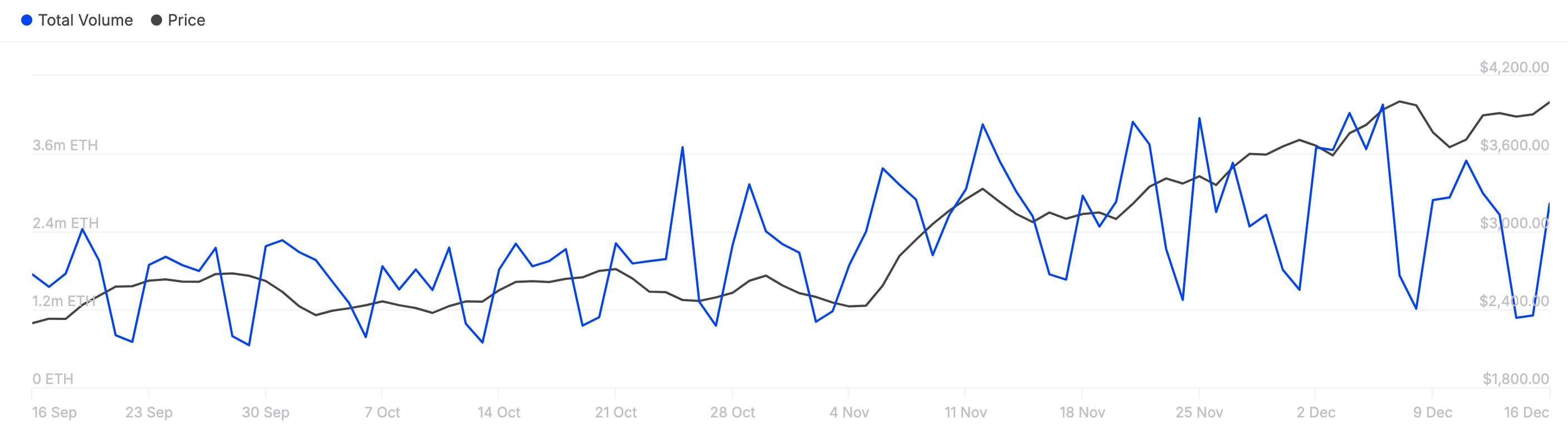Di sisi lain, penurunan metrik ini menunjukkan minat yang menurun. Pada waktu publikasi, transaksi ini bernilai sekitar US$11 miliar. Secara historis, ketika metrik ini naik bersamaan dengan harga, ini adalah tanda bullish. Dengan demikian, harga ETH bisa naik di atas US$4.500 dalam jangka pendek.