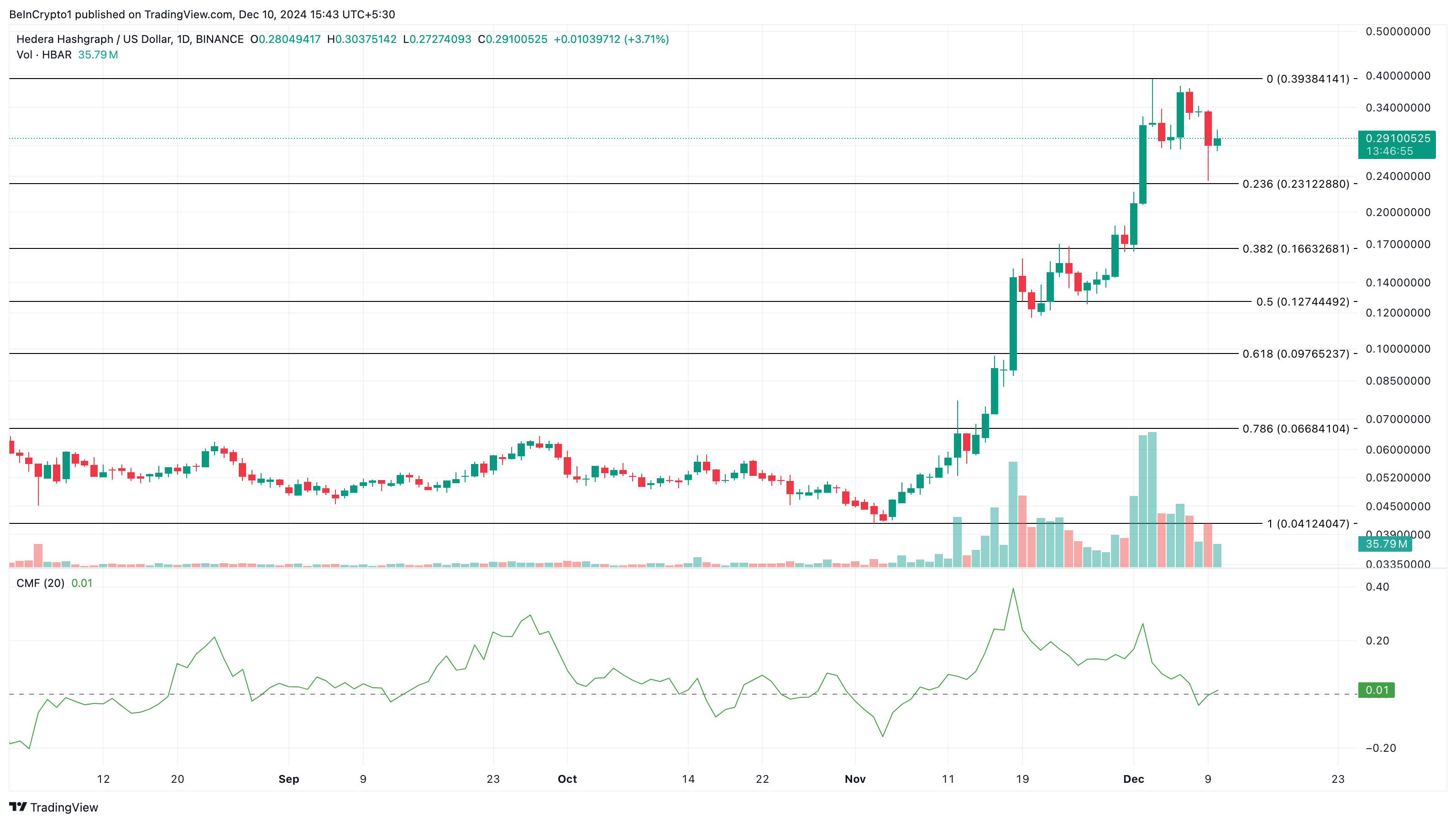 Pada waktu publikasi, HBAR diperdagangkan pada US$0,29. Namun, seberapa rendah nilai aset kripto ini bisa turun?