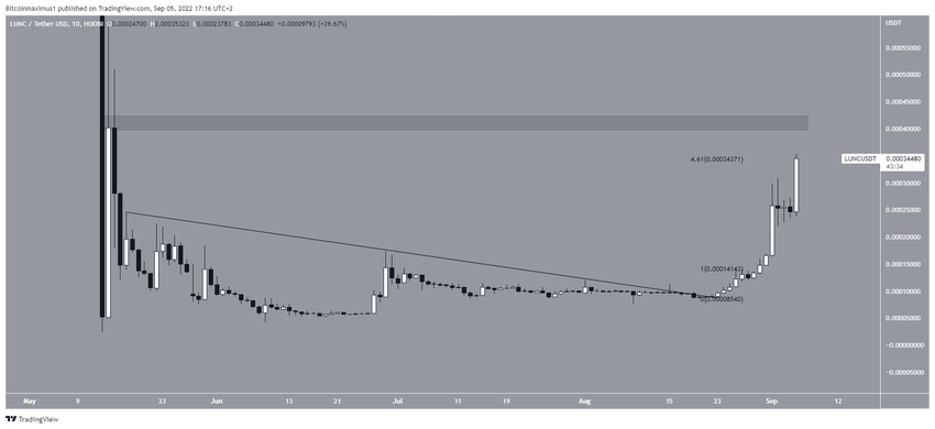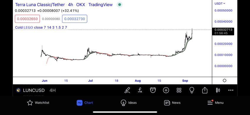 Harga Luna Classic (LUNC) melonjak 40% pada hari Senin (5/9), melanjutkan tren kenaikan yang telah dimulai empat hari sebelumnya.