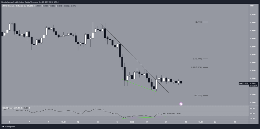 Meskipun dari time frame harian pembacaannya bearish, grafik enam jam jangka pendeknya menunjukkan bahwa reli awal harga Polygon (MATIC) diprediksi akan terwujud sebelum mengalami ia aksi penurunan. MATIC menjebol garis descending resistance setelah RSI menghasilkan bullish divergence (garis hijau). Meskipun belum memulai reli, namun harganya telah memvalidasi garis resistance sebagai titik support 24 jam setelah menjebolnya.