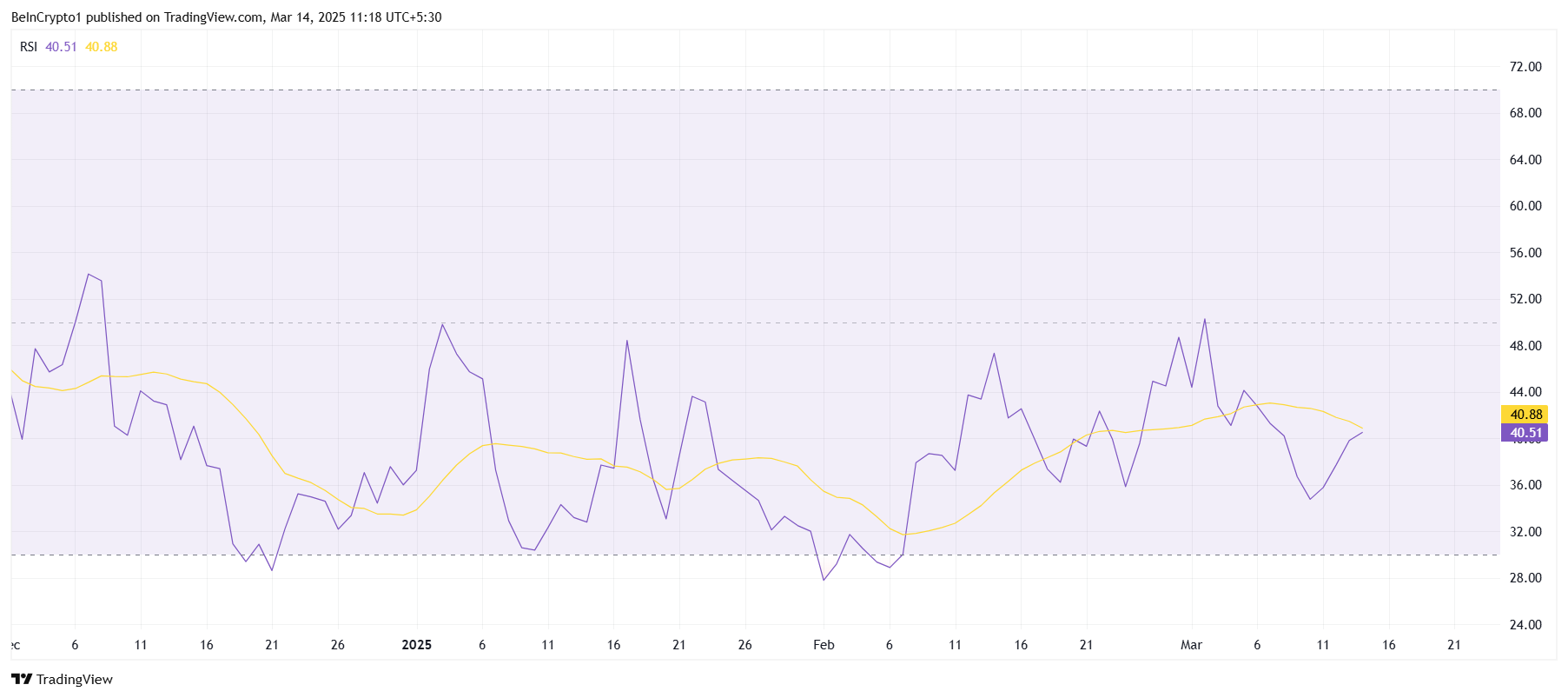 Indikator teknis seperti Relative Strength Index (RSI) juga mencerminkan perjuangan POPCAT untuk menemukan momentum yang berkelanjutan. RSI tetap di bawah garis netral 50,0 selama tiga bulan terakhir, menunjukkan sinyal bullish yang lemah. Situasi ini memperkuat gagasan bahwa petunjuk pasar yang lebih luas tidak mendukung pemulihan yang kuat untuk meme coin ini.