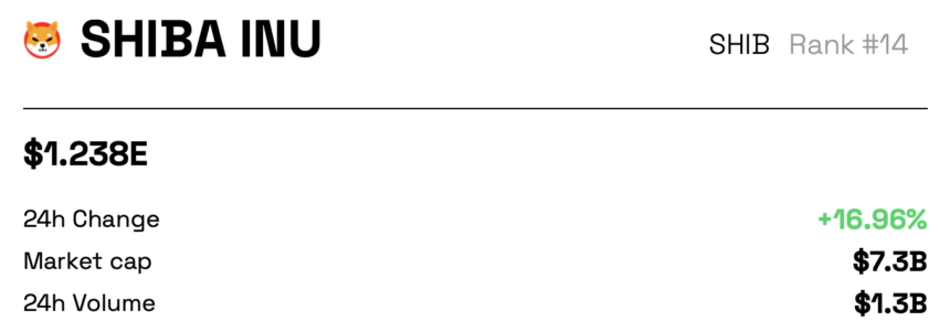 Shiba Inu (SHIB), aset kripto yang terinspirasi dari meme, baru-baru ini berhasil mengalami lonjakan harga. Data dari BeInCrypto mengungkapkan bahwa harga SHIB tercatat telah naik 15,2% dalam 24 jam dan 31,2% dalam seminggu terakhir. Meskipun kapitalisasi pasarnya kecil, saat ini SHIB mampu menduduki peringkat ke-14 sebagai aset digital terbesar, dengan harga per token yaitu US$0,000012.