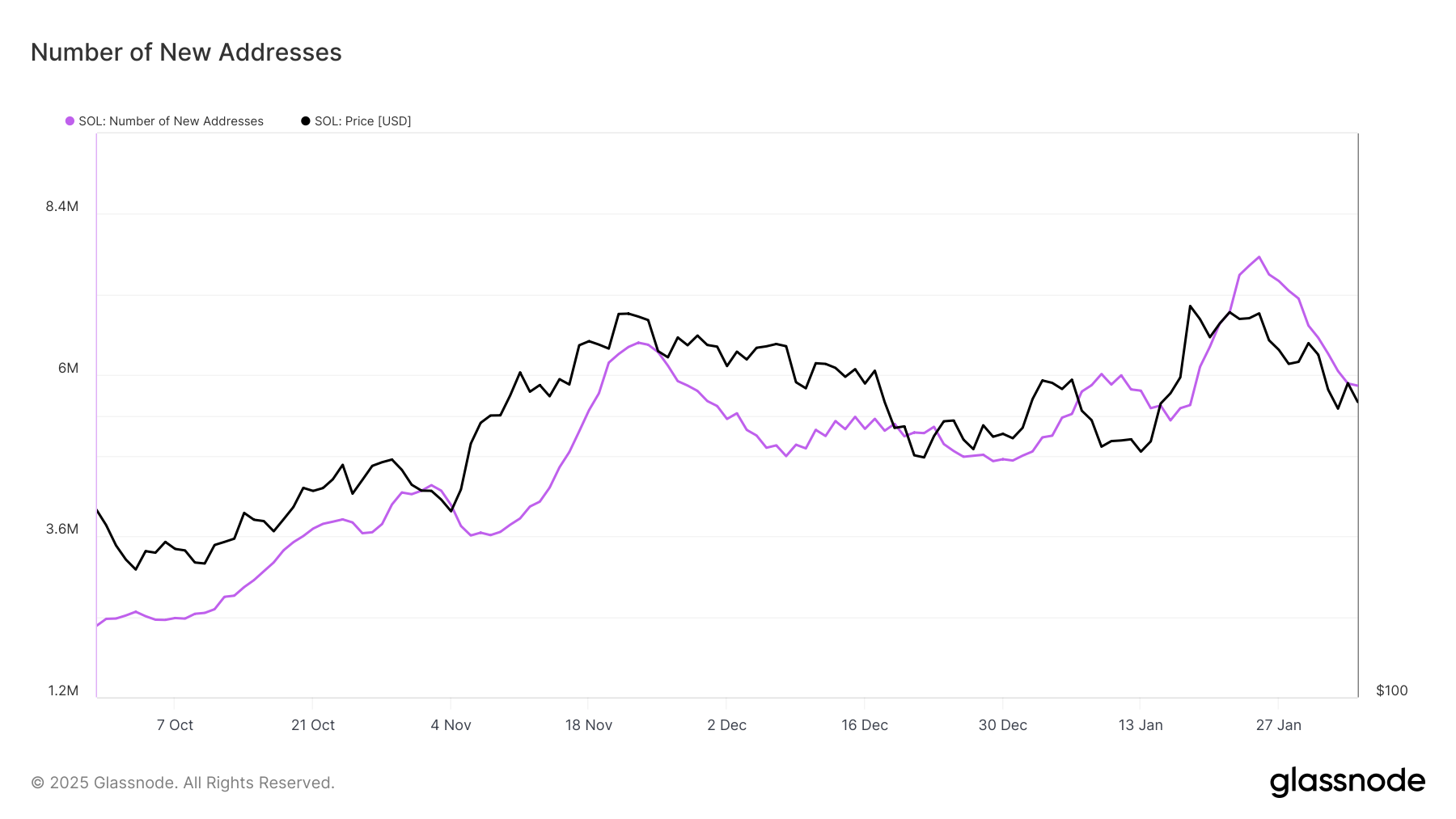 Dalam beberapa hari terakhir, Solana mengalami penurunan jumlah alamat baru. Metrik ini penting karena mewakili investor baru yang masuk ke pasar.