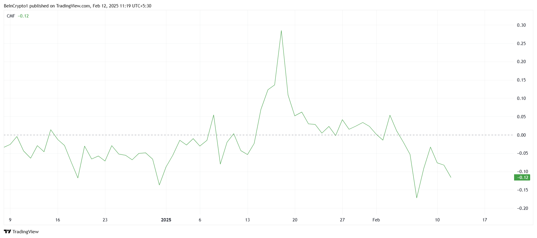 Momentum Solana secara keseluruhan tetap campuran, dengan indikator teknis seperti Chaikin Money Flow (CMF) menunjukkan perjuangan yang berkelanjutan. Meskipun ada peningkatan arus masuk, CMF tetap di bawah garis nol, menunjukkan bahwa pergerakan positif dibayangi oleh arus keluar. Ini menunjukkan bahwa skeptisisme investor terus membebani kinerja altcoin ini.