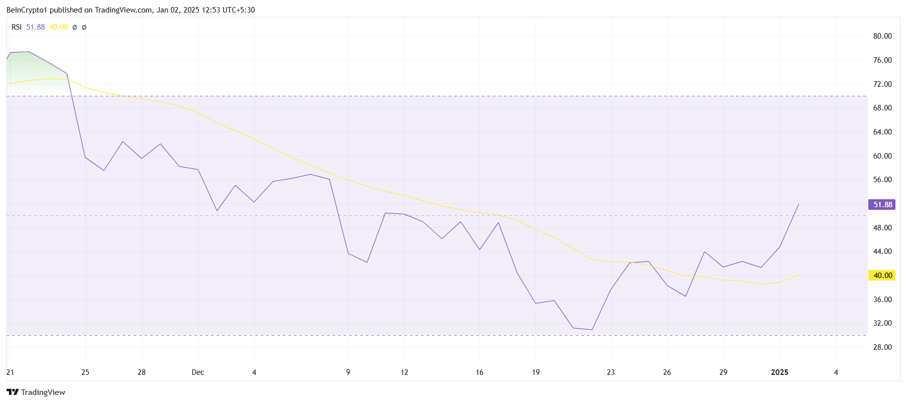 Momentum makro Solana juga semakin kuat, dengan Relative Strength Index (RSI) naik kembali di atas level netral 50,0. Pergerakan ini menandakan bahwa momentum bullish kembali, berpotensi membuka jalan untuk kenaikan harga lebih lanjut. RSI yang bertahan di atas 50,0 biasanya menunjukkan lingkungan yang menguntungkan untuk pergerakan naik.