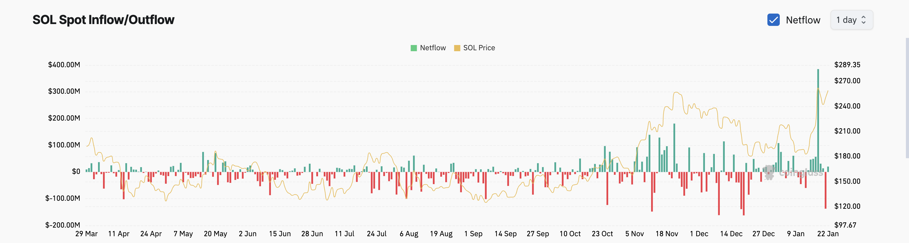 Solana (SOL) telah turun 14% dari harga tertinggi sepanjang masa US$295,83 yang dicapai pada 19 Januari. Meskipun penurunan ini, sentimen bullish tetap kuat karena pelaku pasar mengurangi aksi ambil untung.