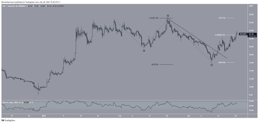 Kedua, harga SOL terlihat telah menyelesaikan struktur A-B-C, di mana gelombang A:C memiliki rasio 1:1,61. Jika ini memang koreksi yang sudah selesai, harga Solana sekarang telah memulai pergerakan naik baru yang akan mengantarkan harganya minimal ke level US$28.