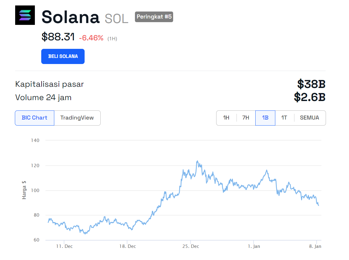 Saat publikasi, Solana tengah diperdagangkan di harga US$99,43, atau sudah turun 1,06% dalam 24 jam terakhir.