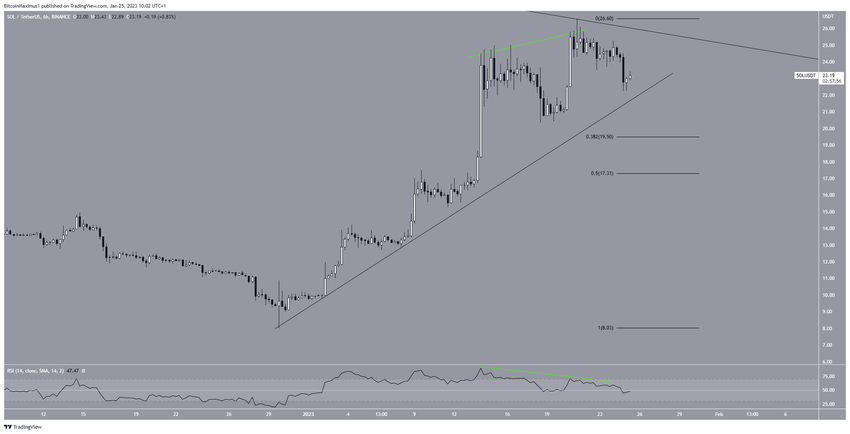 Analisis teknikal dari time frame enam jamnya menunjukkan bahwa harga Solana telah meningkat di sepanjang garis ascending support sejak 30 Desember.