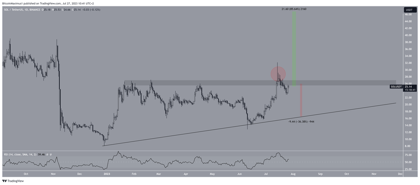 Sementara itu, jika harga SOL berhasil merebut kembali level US$26, maka harganya dapat naik menuju US$35. Namun, jika gagal melakukannya, kemungkinan harganya akan tergelincir menuju garis ascending support di level US$18.