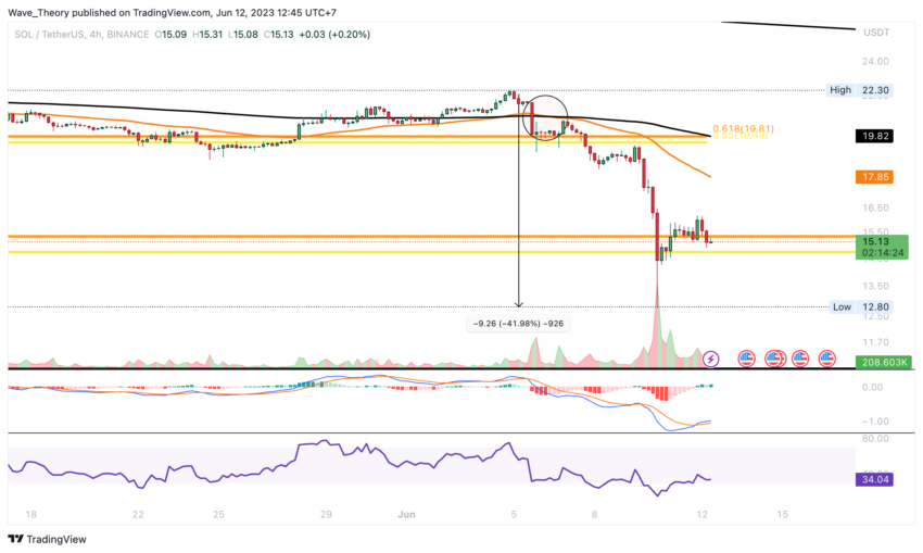 Tapi, apabila Solana terus turun atau breakdown lebih jauh dari level support ini, support signifikan berikutnya akan menanti di antara level US$8 dan US$11. Hal ini mengindikasikan potensi penurunan sebesar 27,7%.