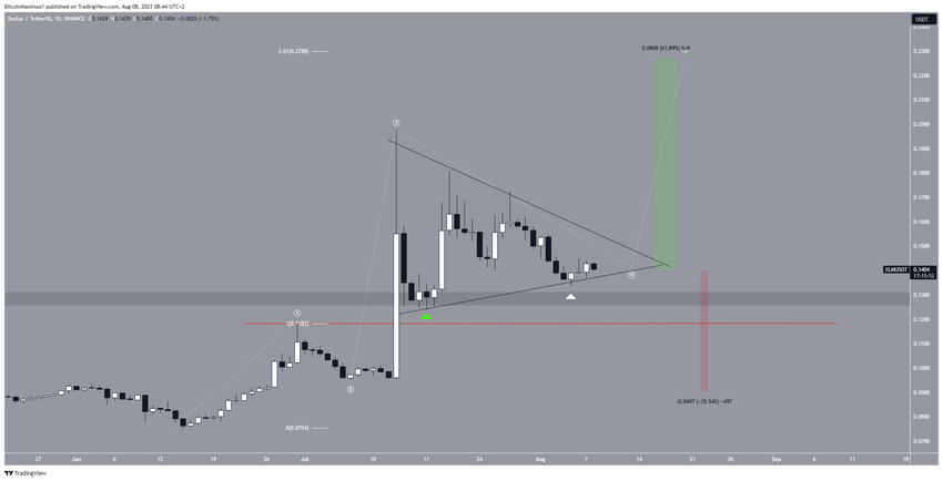Jika terjadi breakout, hal ini akan mengonfirmasi bahwa tren harga sedang bullish, dan gelombang kelima telah dimulai. Dalam skenario tersebut, XLM berpotensi mengukir kenaikan harga sebesar 60% menuju resistance berikutnya di level US$0,230. Target harga ini sendiri diidentifikasi dengan menggunakan ekstensi atau perpanjangan 3,61 dari gelombang pertama.
