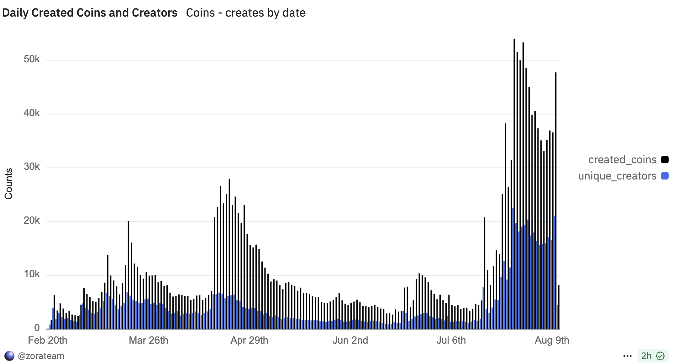 Kenaikan ini tidak terbatas pada harga. Zora, sebuah platform blockchain yang memungkinkan pembuatan dan perdagangan konten tokenisasi dan koin kreator, juga mengalami peningkatan dramatis dalam keterlibatan pengguna.