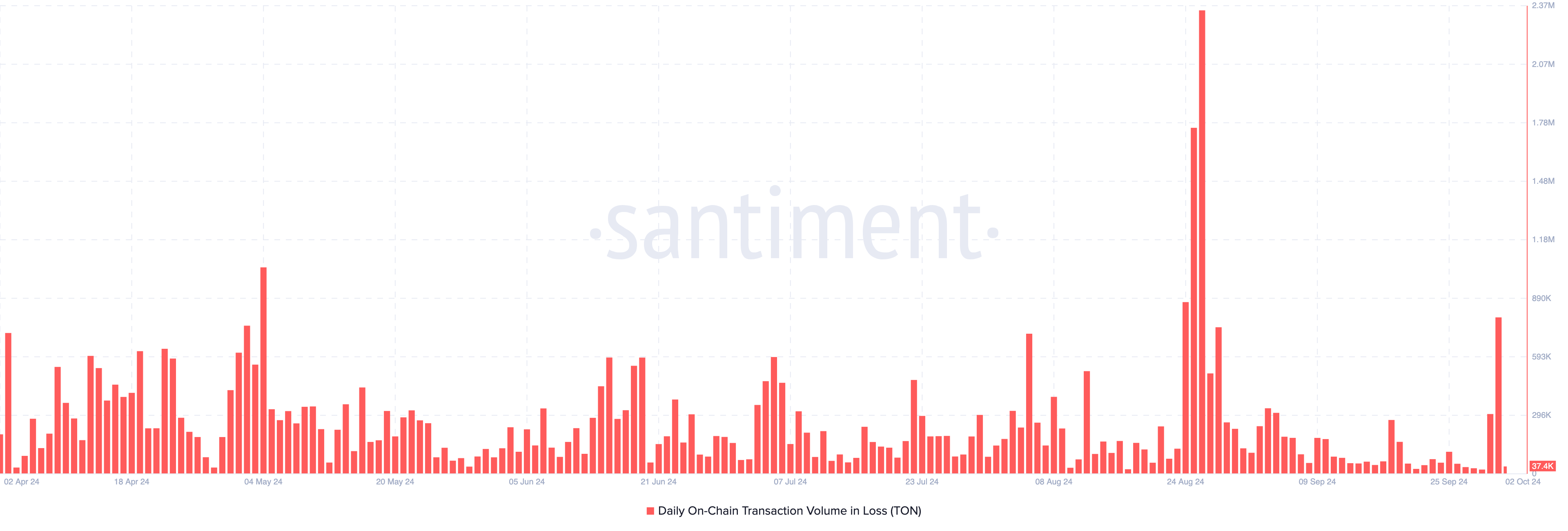 Menyusul penurunan terbaru, data on-chain mengungkapkan lonjakan kerugian yang direalisasikan Toncoin. Kemarin, pemegang mengalami kerugian pada 788.000 token.