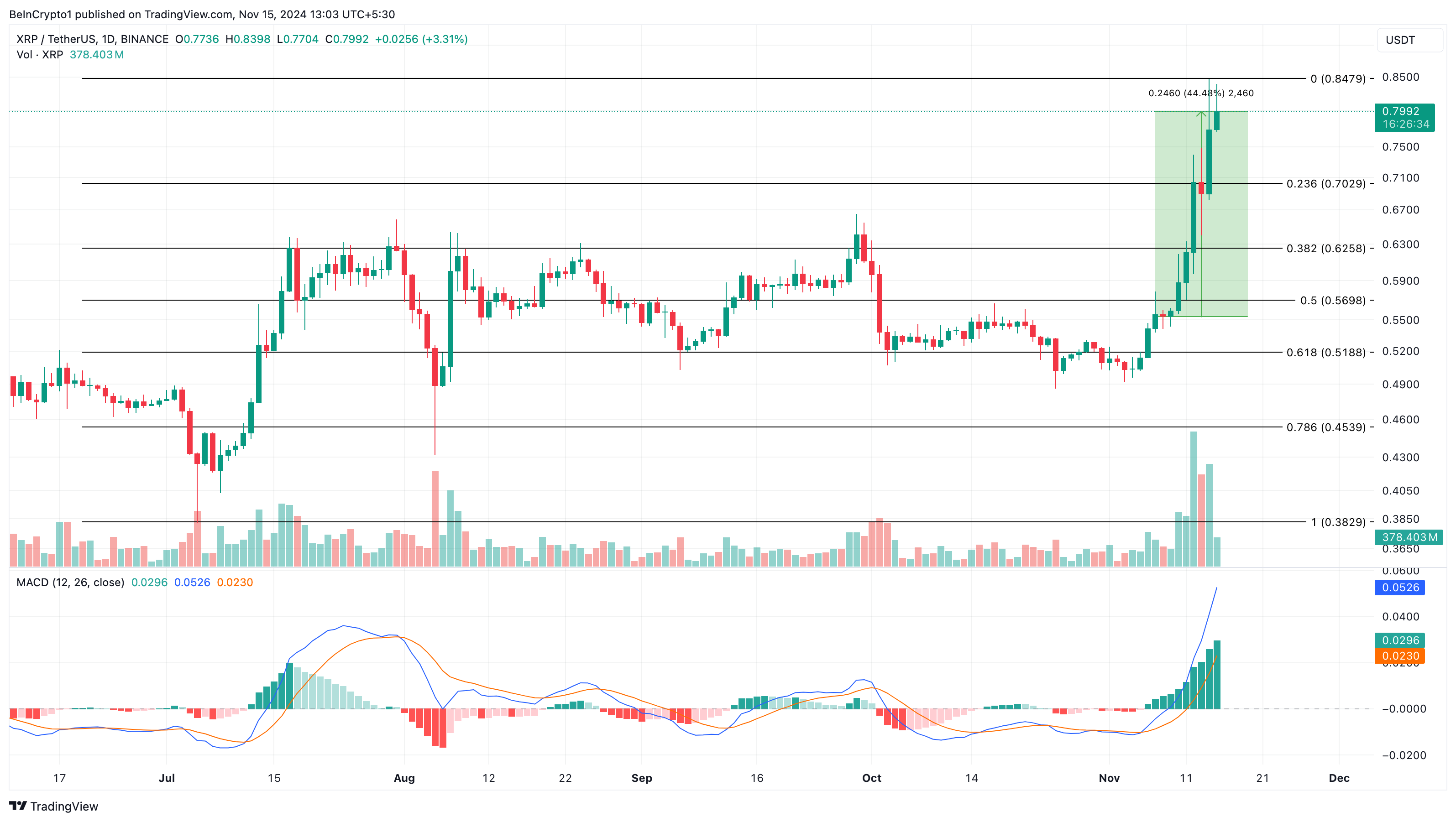 Dengan harga saat ini, ini berarti US$2,75 miliar, mencerminkan tekanan beli yang substansial yang telah berkontribusi pada momentum naik altcoin tersebut. Jika ini terus berlanjut, maka harga XRP mungkin bisa reli lebih tinggi dari US$0,80. Namun, bisakah itu terjadi?