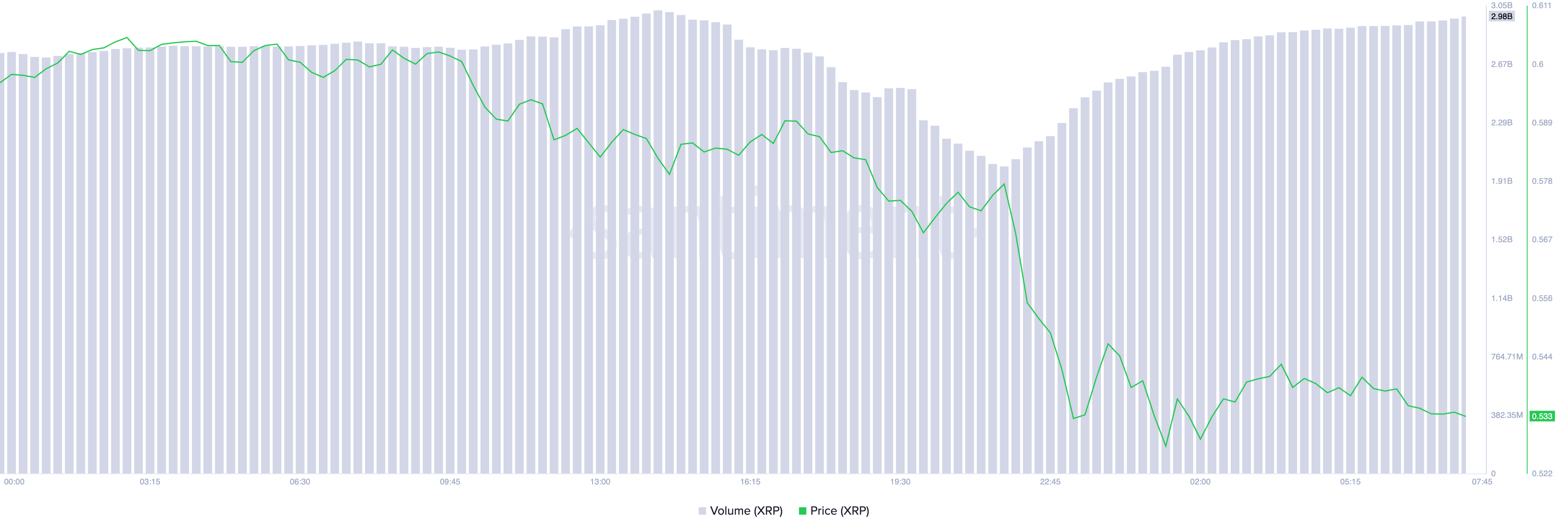 Keputusan SEC untuk mengajukan banding, yang diperparah oleh penurunan pasar umum, telah menyebabkan lonjakan penjualan XRP. Altcoin tersebut diperdagangkan pada US$0,53, mencatat penurunan harga 11% selama 24 jam terakhir. Selama periode yang sama, volume perdagangannya meningkat 5%.