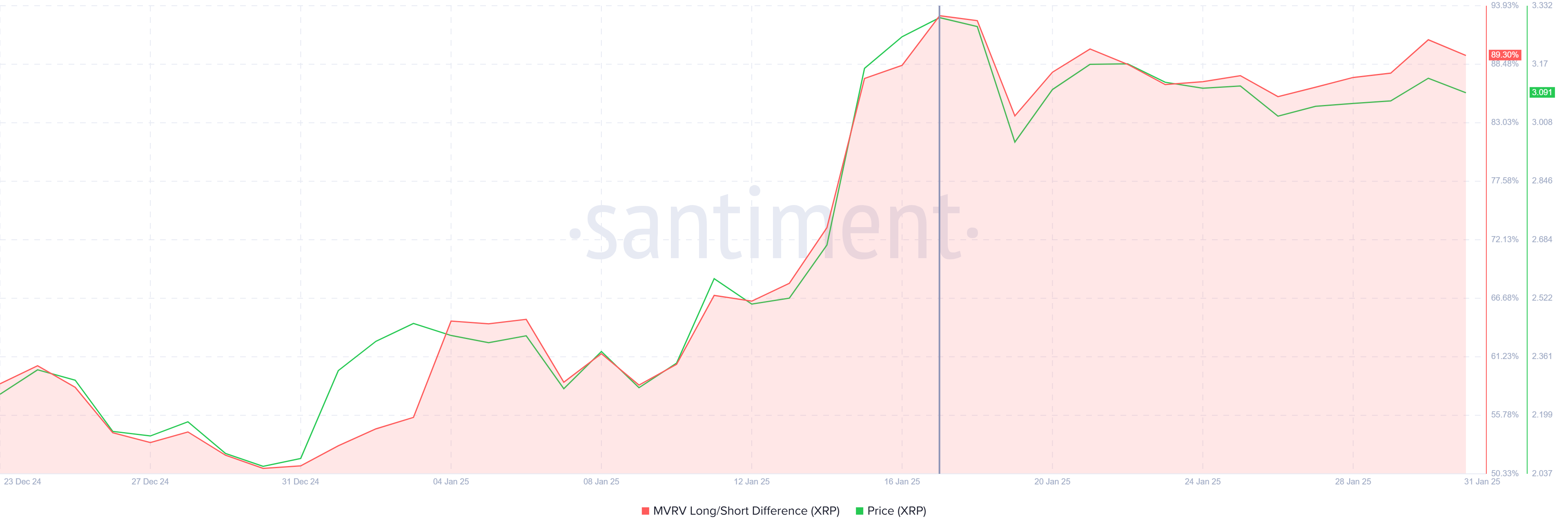 Perbedaan MVRV Long/Short menunjukkan bahwa holder jangka panjang (LTH) tetap untung, mendapatkan manfaat dari aksi harga XRP baru-baru ini. Para investor ini belum bergerak untuk menjual, menunjukkan ketahanan meskipun ada volatilitas jangka pendek. Kepemilikan mereka yang berkelanjutan sangat penting untuk menjaga stabilitas.
