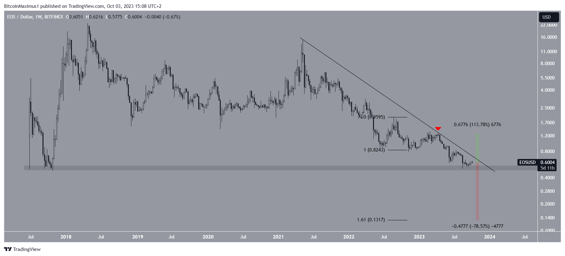 Saat ini, EMA 50 minggu dan EMA 200 minggu berfungsi sebagai level support tambahan.