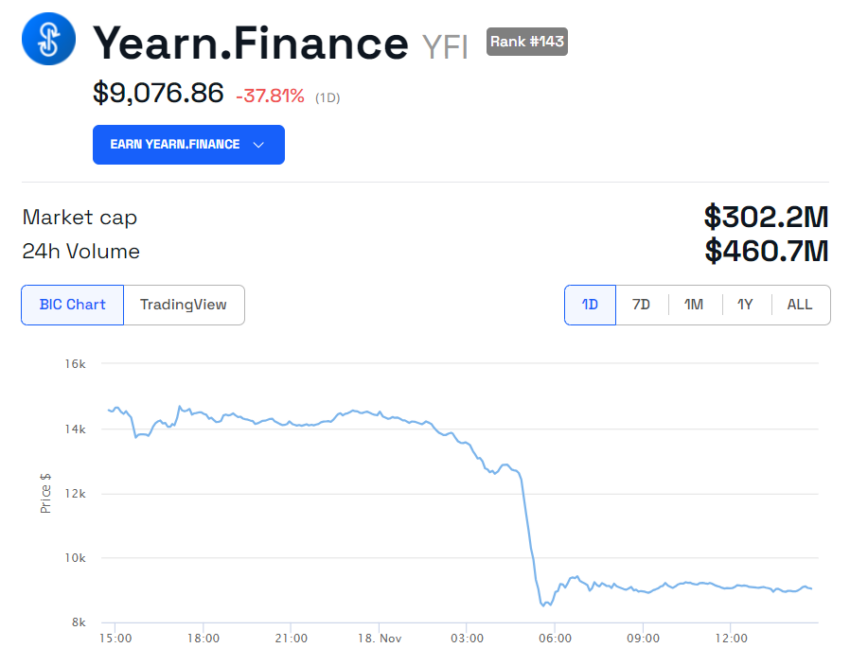 Data dari BeInCrypto menunjukkan bahwa harga Yearn Finance turun tajam dari US$14.519 menjadi US$8.915 dalam beberapa jam. Namun, YFI telah pulih menjadi lebih dari US$9.000 pada saat publikasi berita ini.